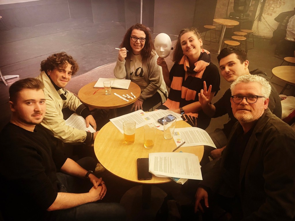 Once the groups are formed then the countdown begins. I was part of Team Mask. Our prop was a mask, and our line of dialogue was ‘I don’t care if we’re related, I’ll do whatever it takes’.